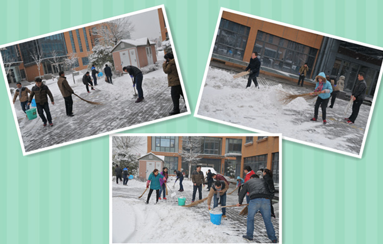 瑞雪兆豐年。1月21日夜的一場(chǎng)鵝毛大雪,將冬的素雅裝扮的分外妖嬈,遍地銀裝素裹。一大早,各位同事迎著寒冷,踏著滿地白雪,踩著一路柔情來(lái)到公司,顧不得抖掉身上的落雪,欣然加入掃雪隊(duì)伍。